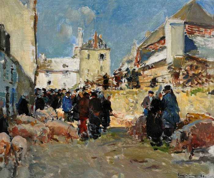 Simon was inspired by the Breton landscape and people in their traditional and daily activities. He traveled the roads of Britain, seeking out and painting the landscapes, country life scenes, harbors, old streets and typical characters
